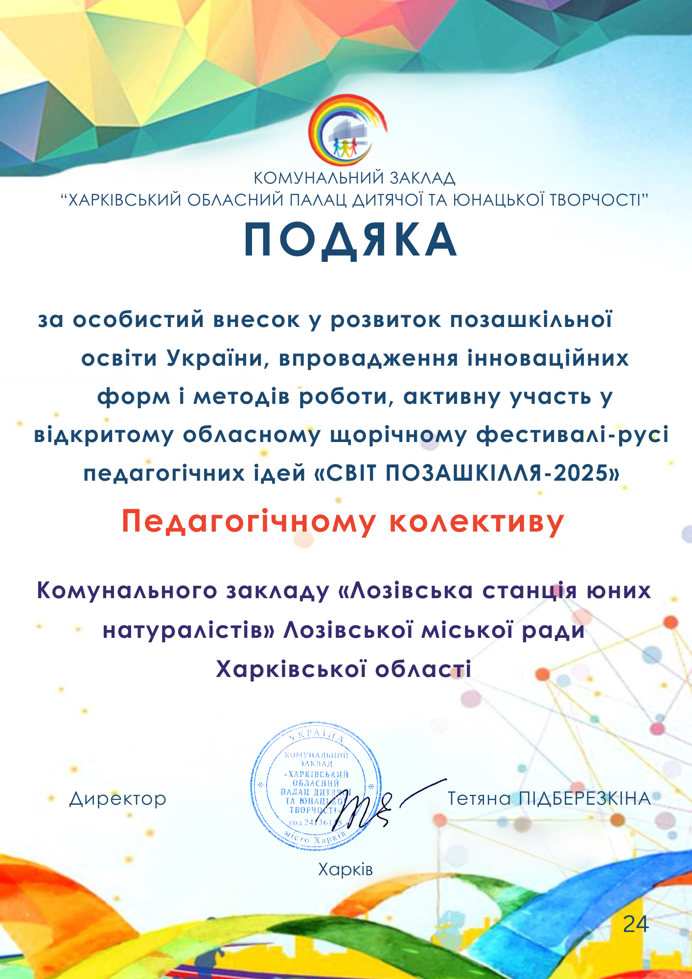 25 вересня 2025 р. з нагоди Дня позашкілля у КЗ «Харківський обласний Палац дитячої та юнацької творчості» відбувся щорічний відкритий обласний фестиваль-рух педагогічних ідей «СВІТ ПОЗАШКІЛЛЯ».